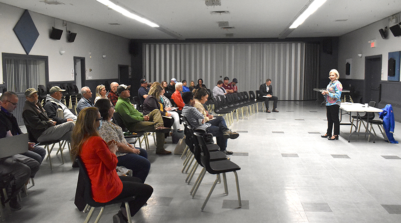 Jane Toller addresses the crowd at the Pontiac Business Community Forum in Fort-Coulonge last Monday night.
