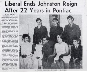 His opponent, Ray Johnston, was no greenhorn having represented the riding for 22 years in addition to sitting as Minister of Revenue for the Union Nationale government. Jean-Guy ended up thumping the incumbent by more than 1,300 votes, something Denis attributed in part to the reputation he built as a businessman.