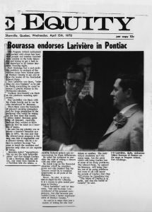 Having proven his mettle on town council and other community groups, in 1970 at only 39 years of age he was nominated as the provincial Liberal candidate for the Pontiac riding.