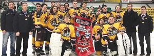 The Pontiac Midget A Lions team took the Outaouais Division title over the weekend by beating out the Citoyens de Hull. These boys are headed to Montreal over the April 5 to 8 weekend to represent the Outaouais at the inter-regional tournament showcasing the top teams in Quebec. Back row from left: Jaden Stewart, Nick Emmerson, Cole Sheppard, Kaleb Hodgins, Justin Dagenais, Nick Curley. Middle row: Trevor Stewart (assistant coach), Ray Curley (coach), Aiden Turner, Vance Olmsted, Evan Atkinson, Quintin McCorkell, Will Hayes, Ben Barr, Tanner Groleau, Jordan Horner (assistant coach), Matt Curley (assistant coach). Front row: Konnor Beck, Owen Ballard and Kaelen Ireland. Congratulations to the Atom A team for being top in the West and our Bantam A team who were top in the West and finalist for the division title.