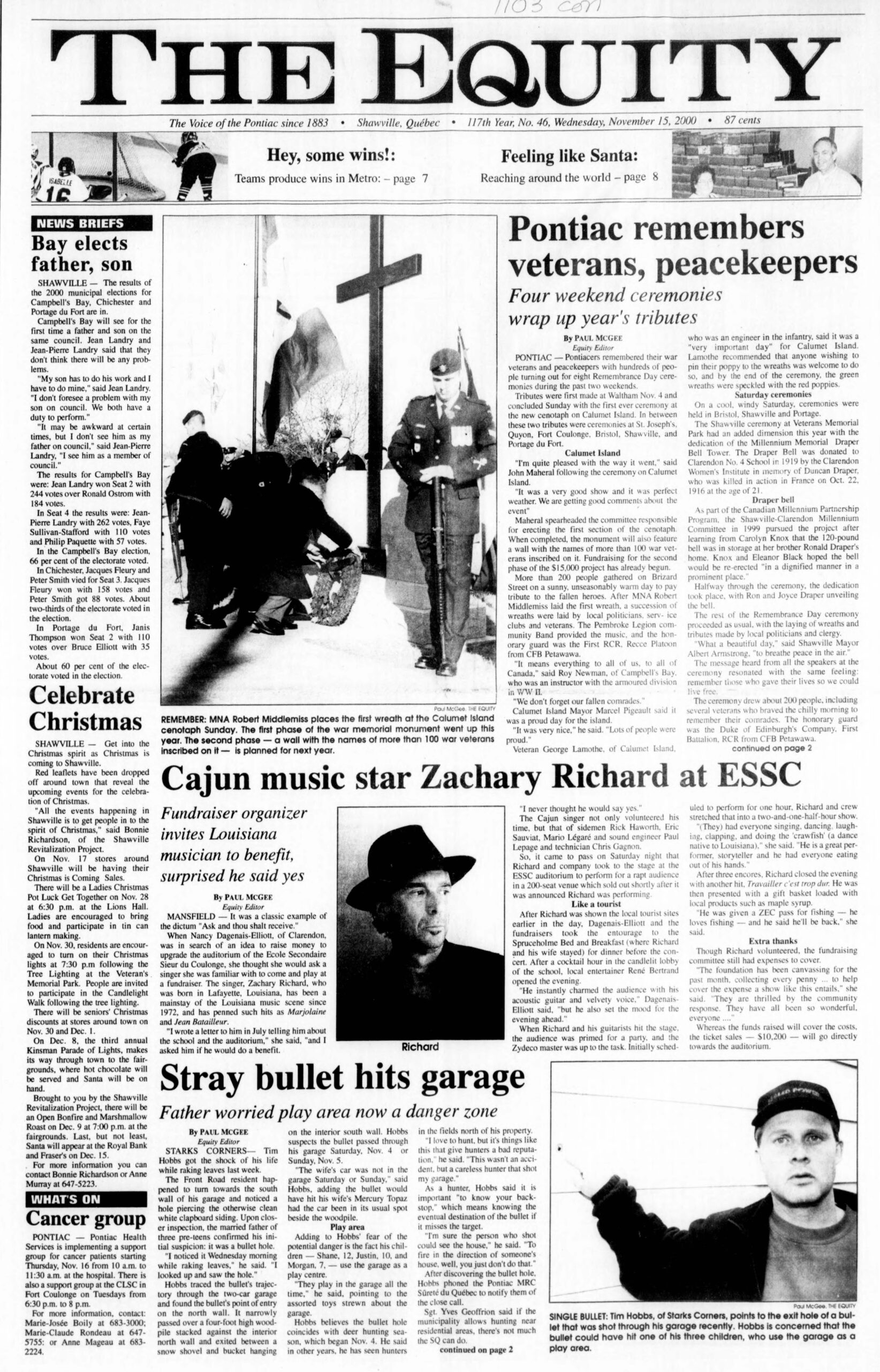 Campbell’s Bay elects father, son: The results of the 2000 municipal elections for Campbell’s Bay, Chichester and Portage du Fort are in. Campbell’s Bay will see for the first time a father and son on the same council. Jean Landry