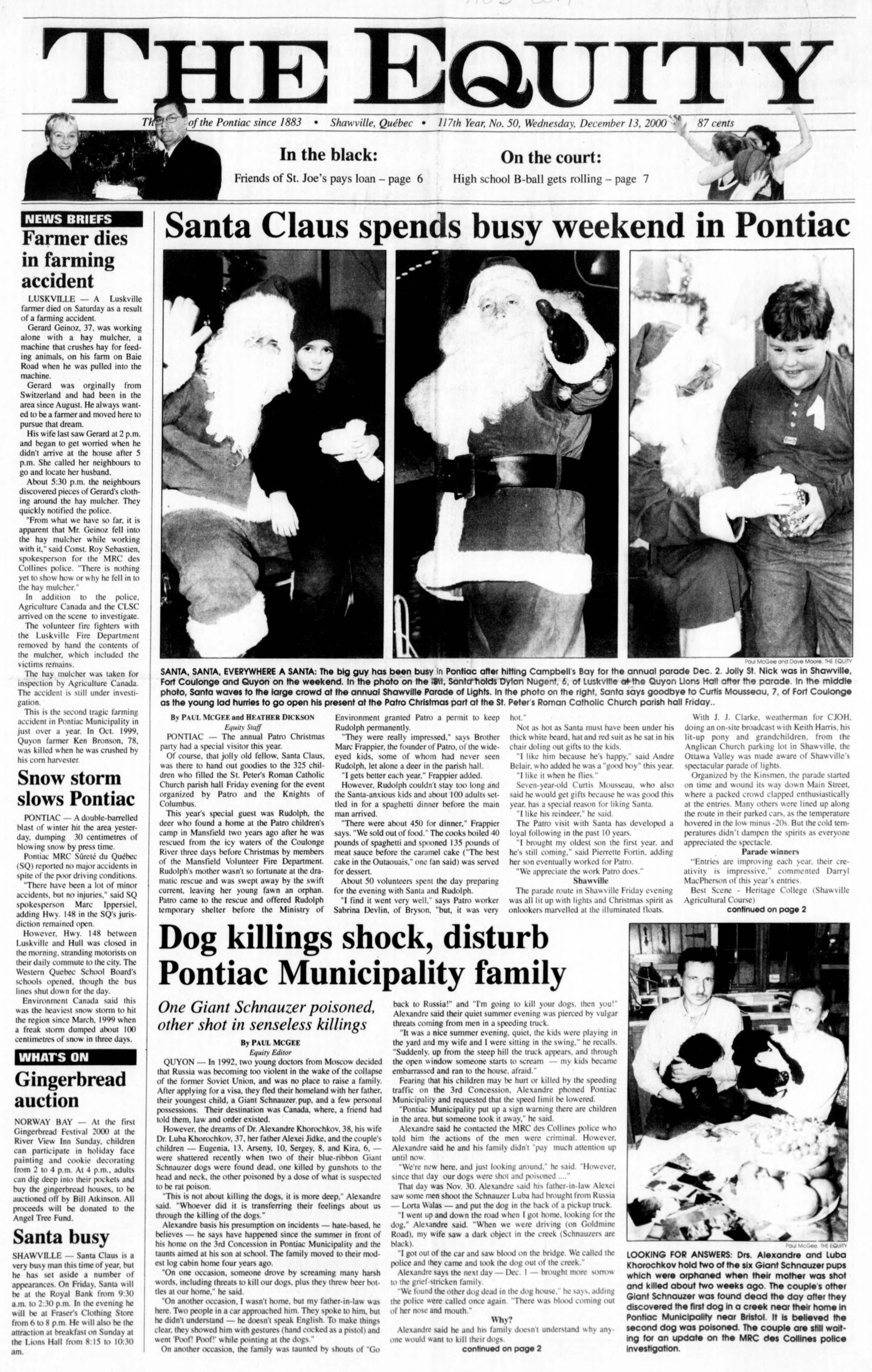 Police report quiet season: The holiday season was a quiet one for the Sûreté du Québec and went smoothly. There were no tragic incidences in the Pontiac region on New Year’s Eve and there were only a few accidents around