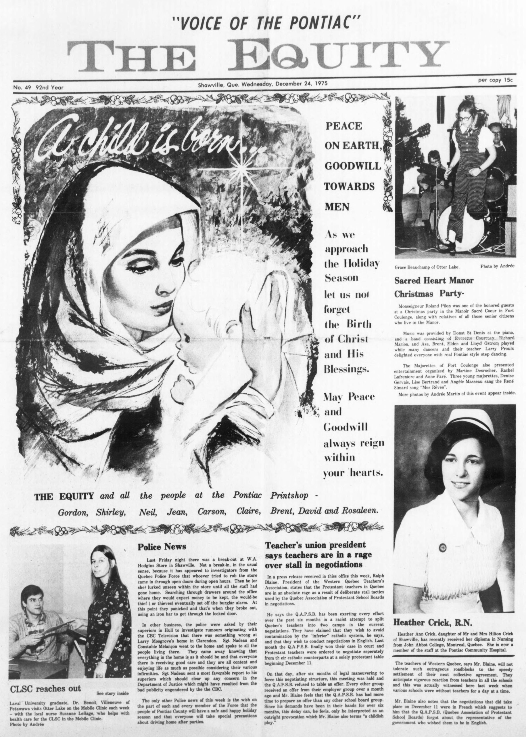 Police News: The road blocks in Shawville Monday were part of a search for hold-up men who robbed Glenwood Five Station in Lucerne at 1:30