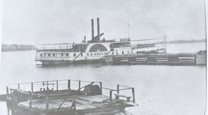 Above, the G. B. Greene, a steam-powered vesel that serviced Quyon. Picture right is the group on the historical walk passing along the side of St-Mary’s Parish in Quyon.