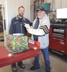 George Berubé’s Christmas shopping just got a whole lot easier after being named the big winner in a contest put on by Lalonde’s Towing. Everyone who bought tires at Lalonde’s had their name entered in the draw and Berubé, a Campbell’s Bay native took home more than $1,000. Pictured: Berube is all smiles as he poses, cash in hand, with owner Danny Lalonde.
