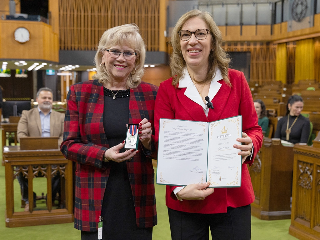 Chapeau Agricultural Society president Gene O’Brien and SADC Pontiac director Rhonda Perry were invited to join 15 other recipients from the Pontiac–Kitigan Zibi federal riding to receive the medal from Pontiac MP Sophie Chatel in a ceremony in the House of Commons on Parliament Hill.