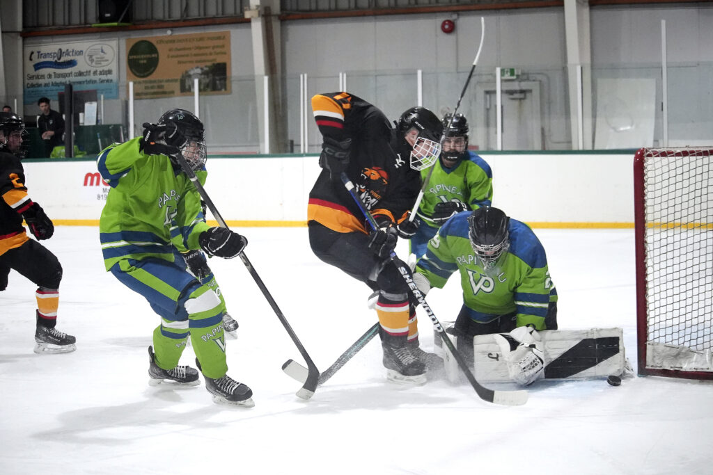 Sure enough, it was the hometown team who got out to a hot start, much to the enjoyment of the Masson crowd. The Voisins scored three goals in the first two periods, prompting a gaggle of young male fans at one end of the rink to climb and shake the boards.