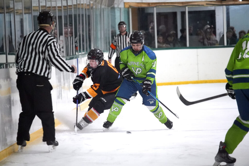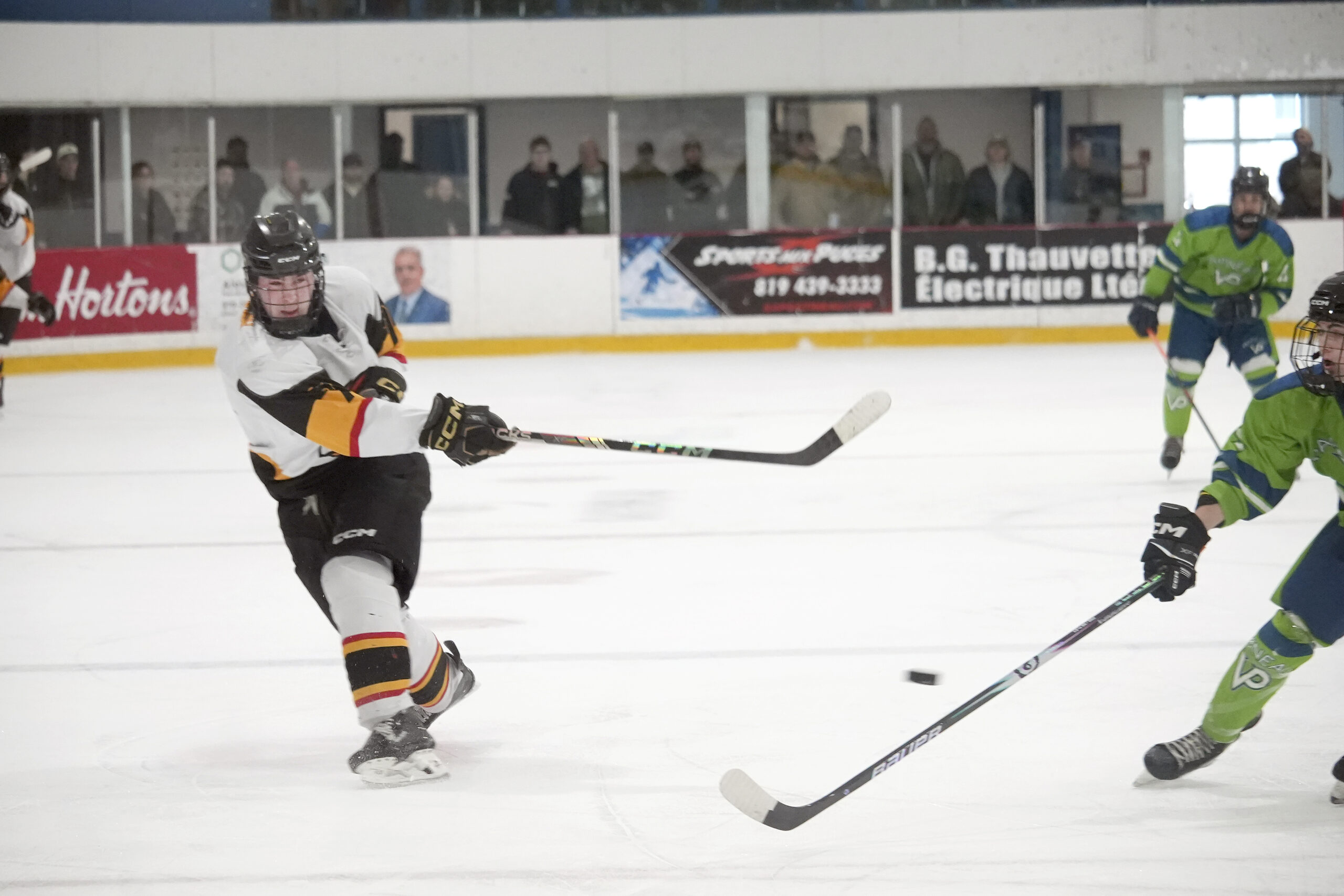 The second period brought some penalty trouble for the hometown Voisins, who racked up three in the frame. This led to the Lions’ first goal of the game, when forward Jakob Dumouchel finally slid one past the Papineau goalie. The Lions’ travelling fans erupted, trying to infuse some life into the team.