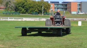 While the 12 teams waited to depart on the course, which meandered up to Thorne Lake and looped back, they got the chance to try their hand at navigating the tractor obstacle course.