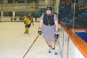Peewee A Lions coach JR Lefebvre had promised earlier in the season when a string of losses started to pile up, that he would sport a dress to a practice if his team would work harder to get back in the win column. Approaching the final game of the season, Lefebvre reminded the crew of the bet and they responded by netting the winning goal in the final minutes of a hard fought 4-3 win against Gatineau. Being the good sport, Lefebvre doned his mother’s dress, fulfilling his end of the bargain. If dressing up for his own teams practice wasn’t enough, he had the updraft of laughter from the Peewee C team, that share ice for practice on Feb. 13.