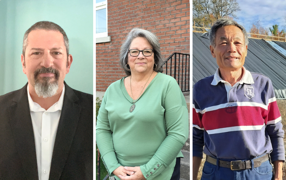 Candidates running for mayor in Bryson are Eric Harrington (left), Joanne Ralston (centre), and Jian Zhang (right).