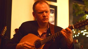 The Little Red Wagon Winery held a celebration of their one-year anniversary this past weekend, offering discounts on wine bottle purchases and hosting three talented musicians for a concert, Celtic-style, Sunday night. Pictured, Jonathan Hilsden plays guitar as part of the evening’s hugely talented trio.