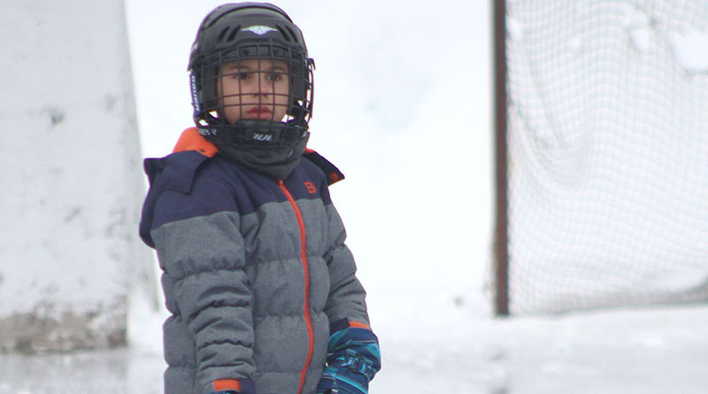 Zachary Vautour works on his hockey skills on the Danford Lake outdoor rink on Saturday afternoon.