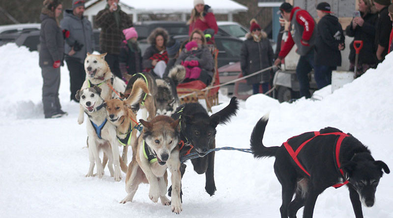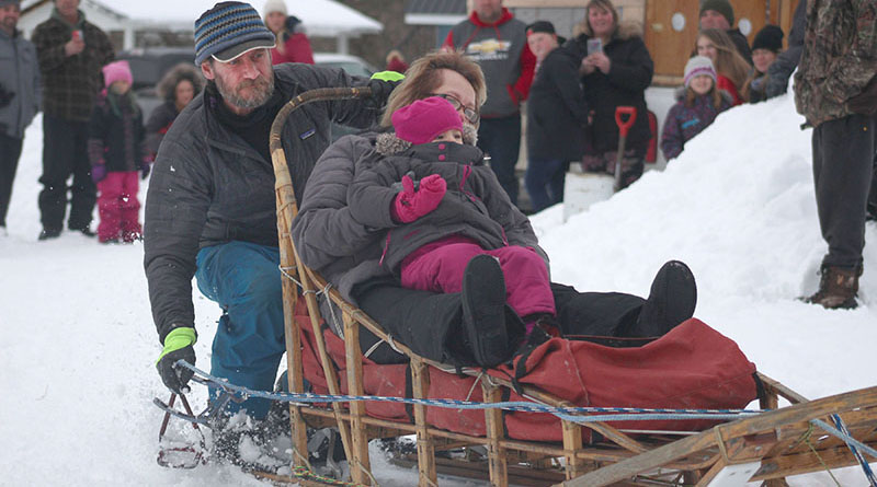 Ed “The Sled” Obrecht and his 10-dog mushing team give Sylvie Roy and her granddaughter Juliette St-Jean a ride on a trail through Heeney Park, during the annual Danford Lake Winter Carnival. Native of Wakefield, Obrecht currently lives in Otter Lake and has competed in a number of big mushing events, including the Hudson Bay Quest in Churchill, MB.