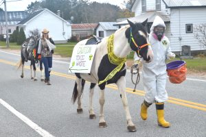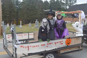 Danielle Villeneuve was presented with the award for best costume, donning her witching attire and accompanying broomstick. The best animal award went to Vanessa Vadneau’s horse, who wore a sign reading “Toxic Waste,” with an arrow pointing to its rear end.