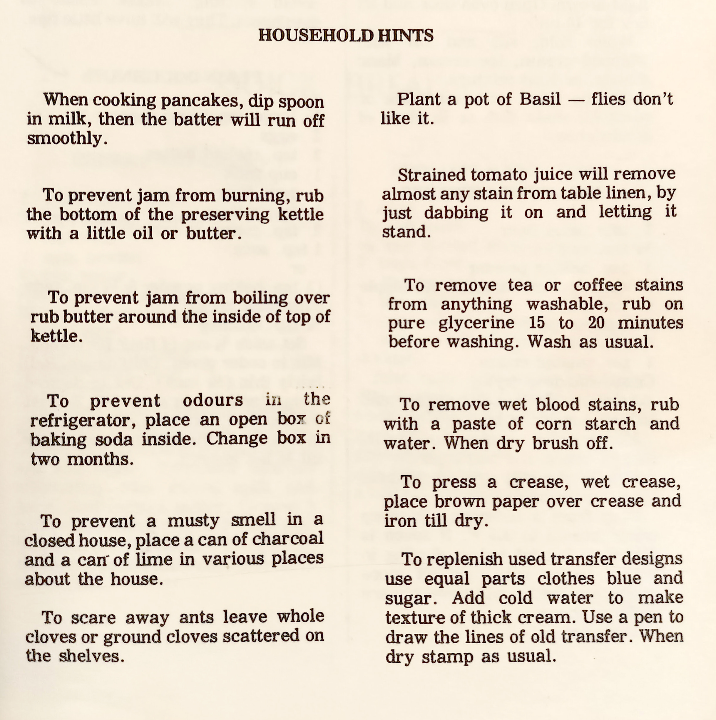 Wyman Women’s Institute Cook Book – Household hints